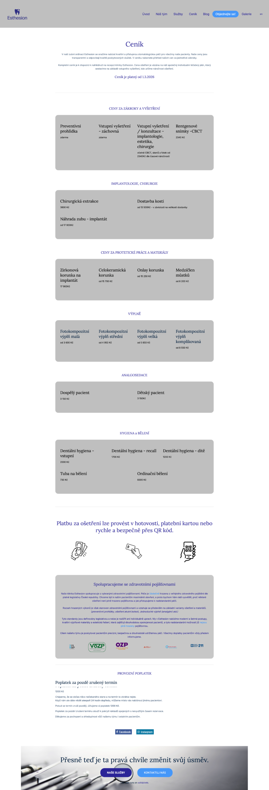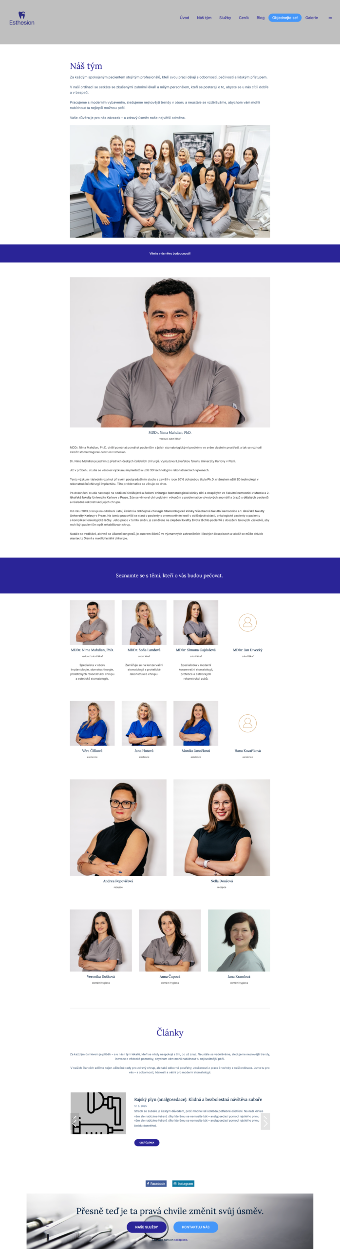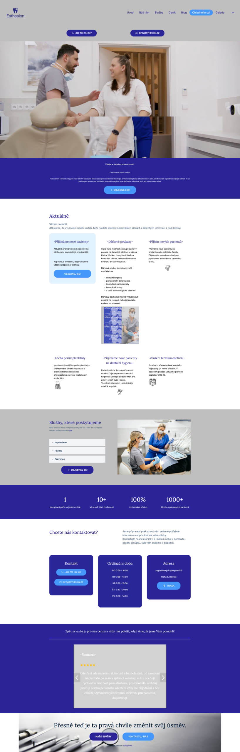 Kompletní redesign webu stomatologické kliniky Esthesion.