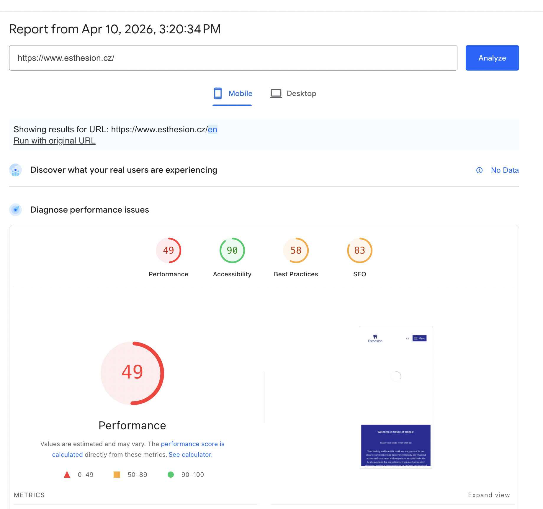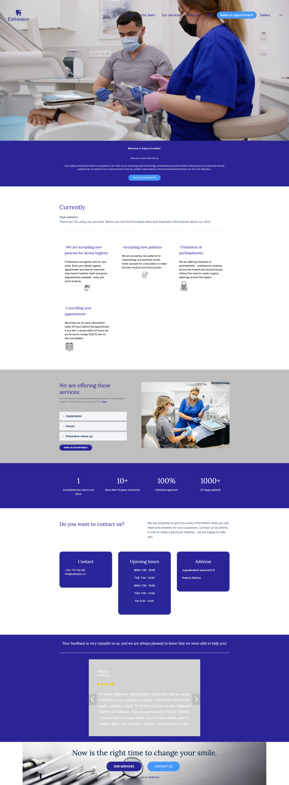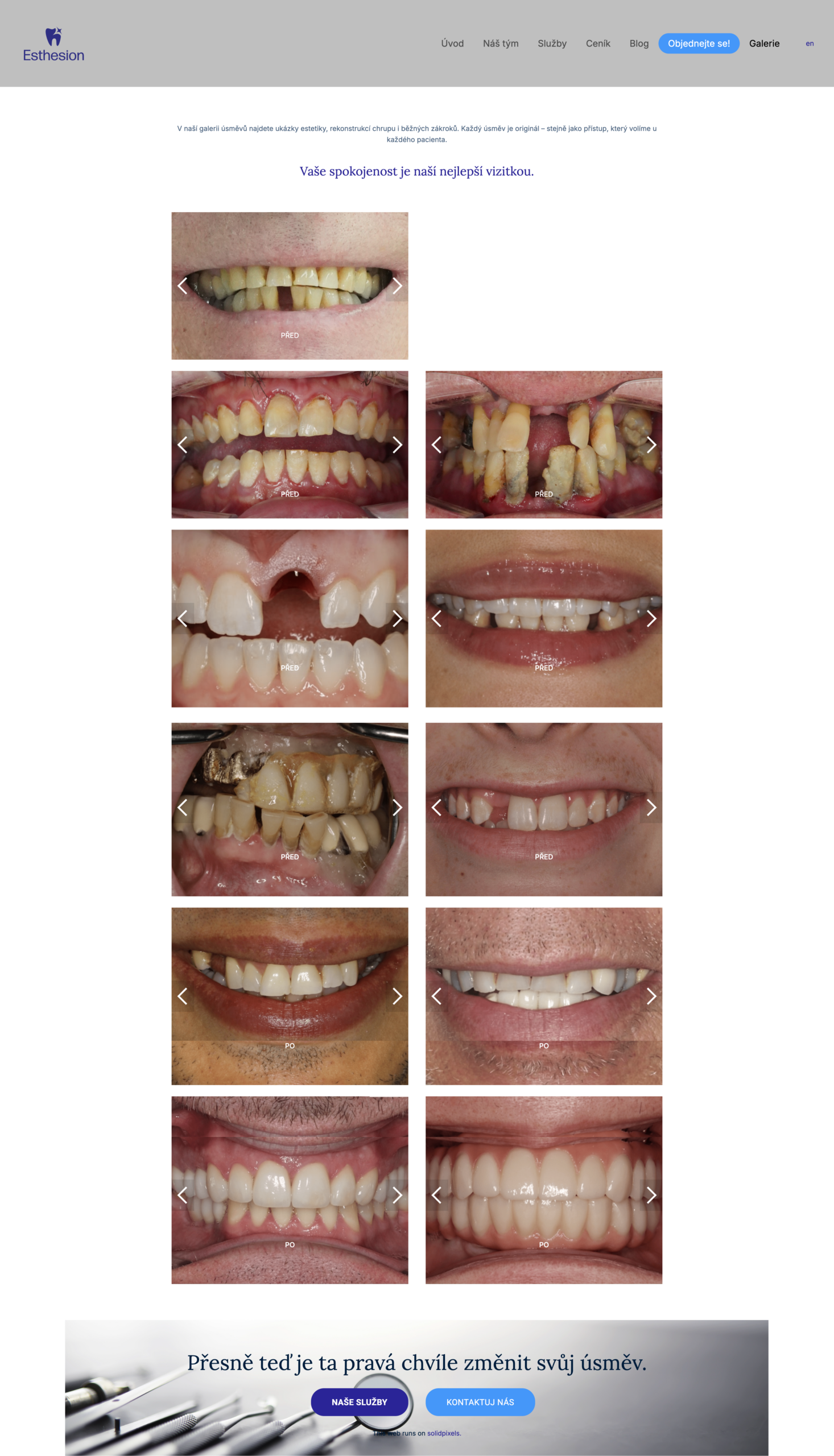 Kompletní redesign webu stomatologické kliniky Esthesion.